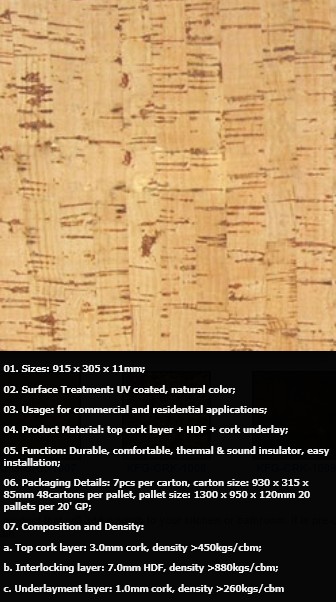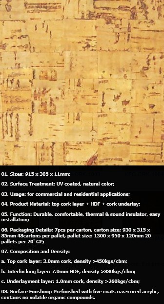 Cork Flooring Tiles Cork Flooring is a natural wood product that will add warmth to your kitchen or bathroom. It is pre-coated for long-lasting protection, and is easy to maintain.
